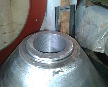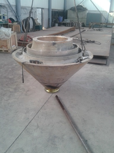 客戶HP500圓錐破碎機(jī)動(dòng)錐體自行更換球頭時(shí),由于安裝不到位,導(dǎo)致無法運(yùn)行,運(yùn)到我公司維修。由我司技術(shù)人員拆除球頭,重新安裝成功。